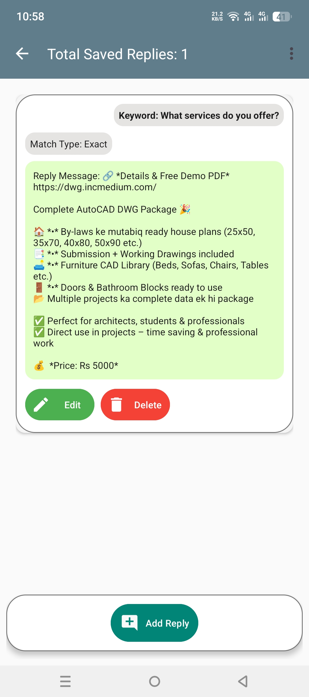 Forget manual typing, delays, and missed leads. With smart keyword-based replies, AI fallback chat, and backup/restore features, this app becomes your virtual assistant that never sleeps.