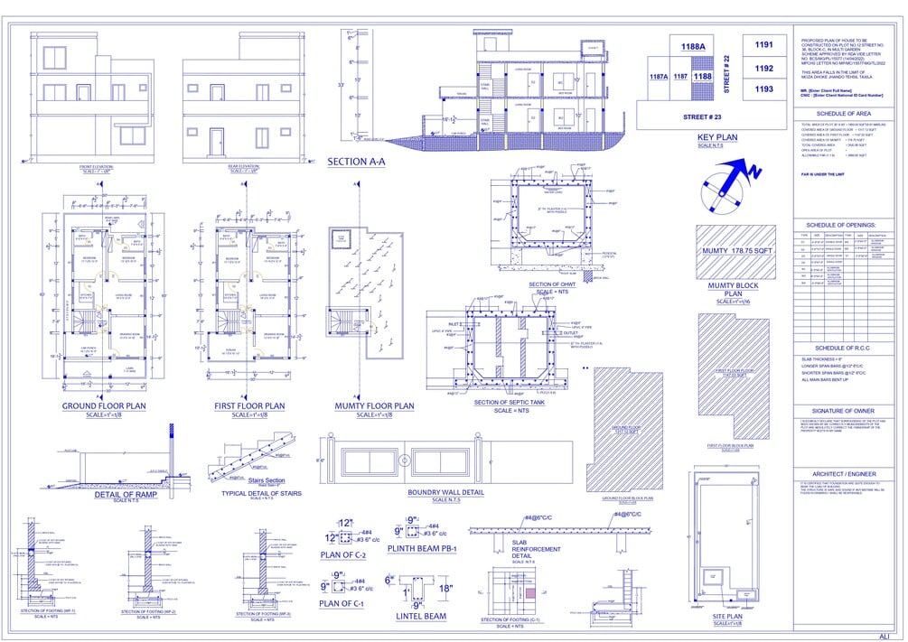The template is specifically built for projects ranging from 3 Marla to 2 Kanal and beyond, making it versatile and adaptable for a wide range of plot sizes. The user-friendly structure requires minimal effort — simply place your drawings in the pre-defined columns, and your submission file will be ready for print in standard blueprint settings.